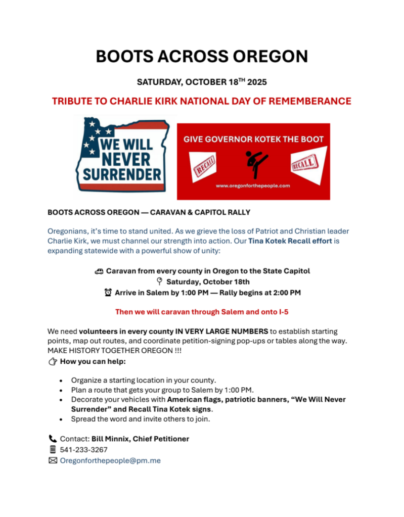Chief petitioner Bill minnix for the Tina Kotek recall will be live on Rick Dancer at 5pm